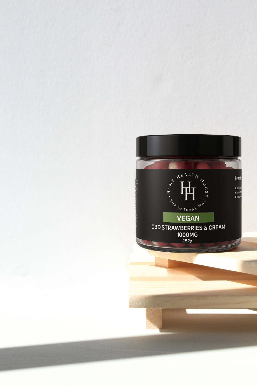 A plant-powered treat designed for those who value clean, conscious wellness. Our vegan Strawberries & Cream gummies are infused with 1000mg of premium plant isolate, delivering calm, clarity, and a delicious flavour experience in every bite.